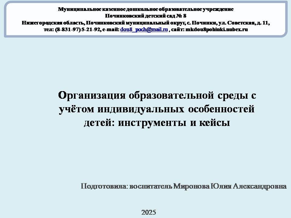 Организация образовательной среды с учётом индивидуальных особенностей детей инструменты и кейсы